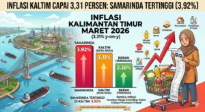 BENUANTA – Gelombang kenaikan harga komoditas terus menghantam wilayah Kalimantan Timur. Berdasarkan data terbaru Badan Pusat Statistik (BPS) pada Maret 2026, tingkat inflasi tahunan provinsi